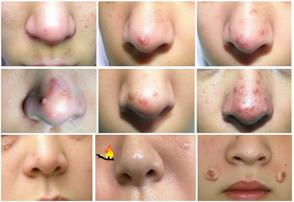 - Mụn trứng cá đỏ (mụn viêm): Là những nốt mụn sưng đỏ, có thể chứa mủ, gây đau nhức.